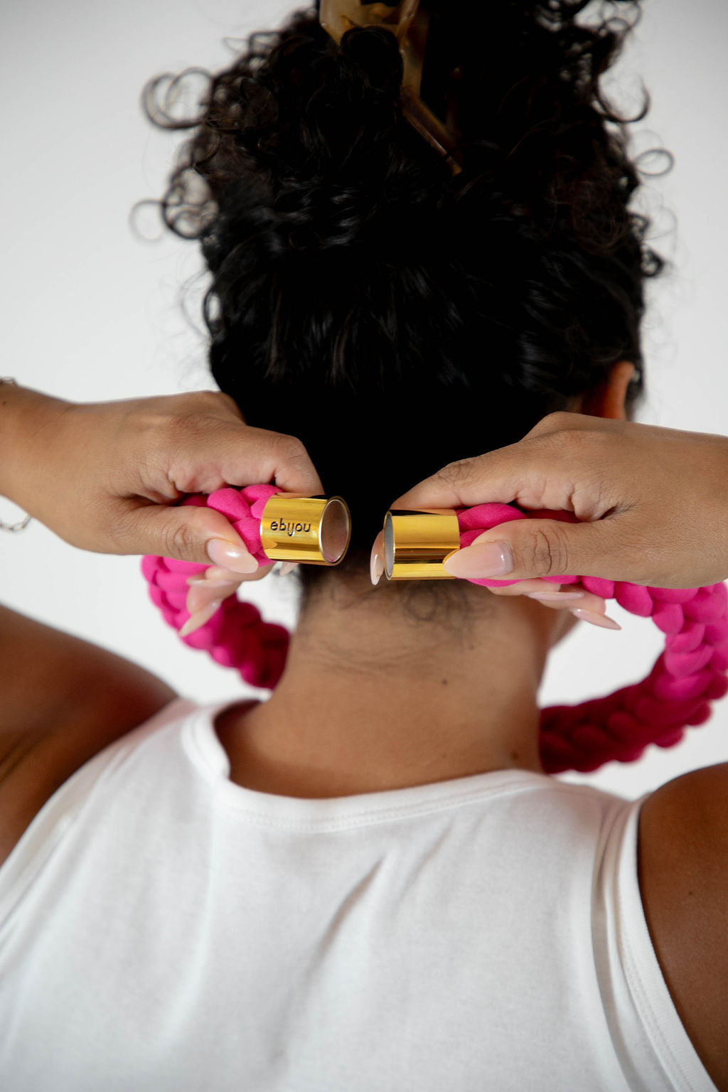 The Statement Braid is generous, unapologetic in scale, and meant to be seen; its sweeping 31-inch length and 1.5-inch width create a bold drape that feels both sculptural and alive.