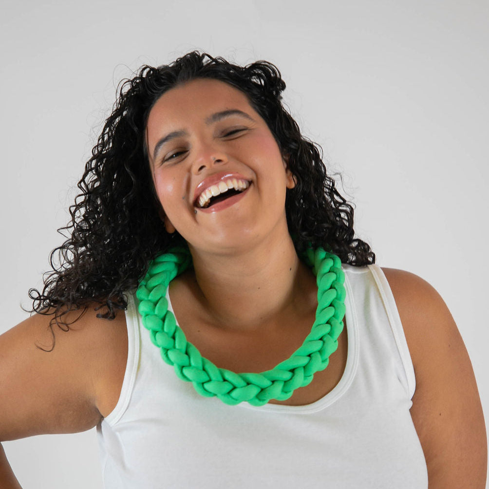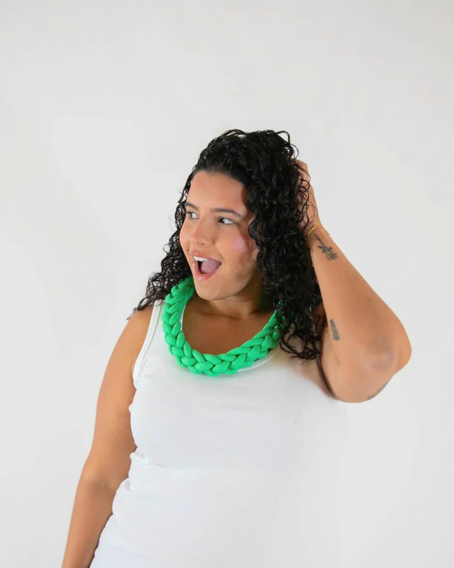 The Statement Braid is generous, unapologetic in scale, and meant to be seen; its sweeping 31-inch length and 1.5-inch width create a bold drape that feels both sculptural and alive.