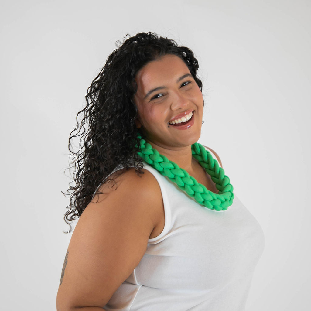 The Classic Braid, in contrast, is refined in its restraint. At 26 inches long and an elegant inch in width, it frames the neckline with quiet confidence; understated, yet no less magnetic.