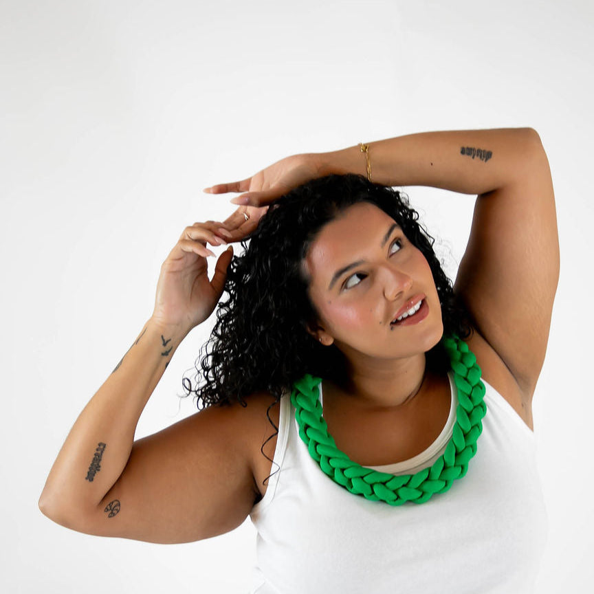 The Classic Braid, in contrast, is refined in its restraint. At 26 inches long and an elegant inch in width, it frames the neckline with quiet confidence; understated, yet no less magnetic.