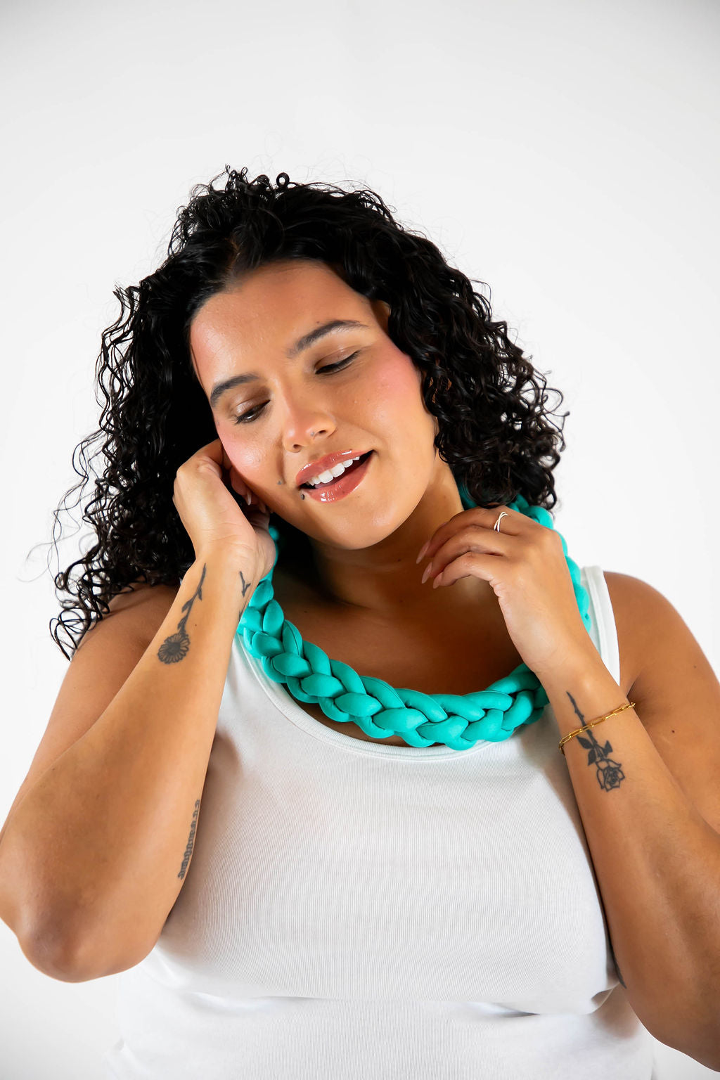 The Classic Braid, in contrast, is refined in its restraint. At 26 inches long and an elegant inch in width, it frames the neckline with quiet confidence; understated, yet no less magnetic.